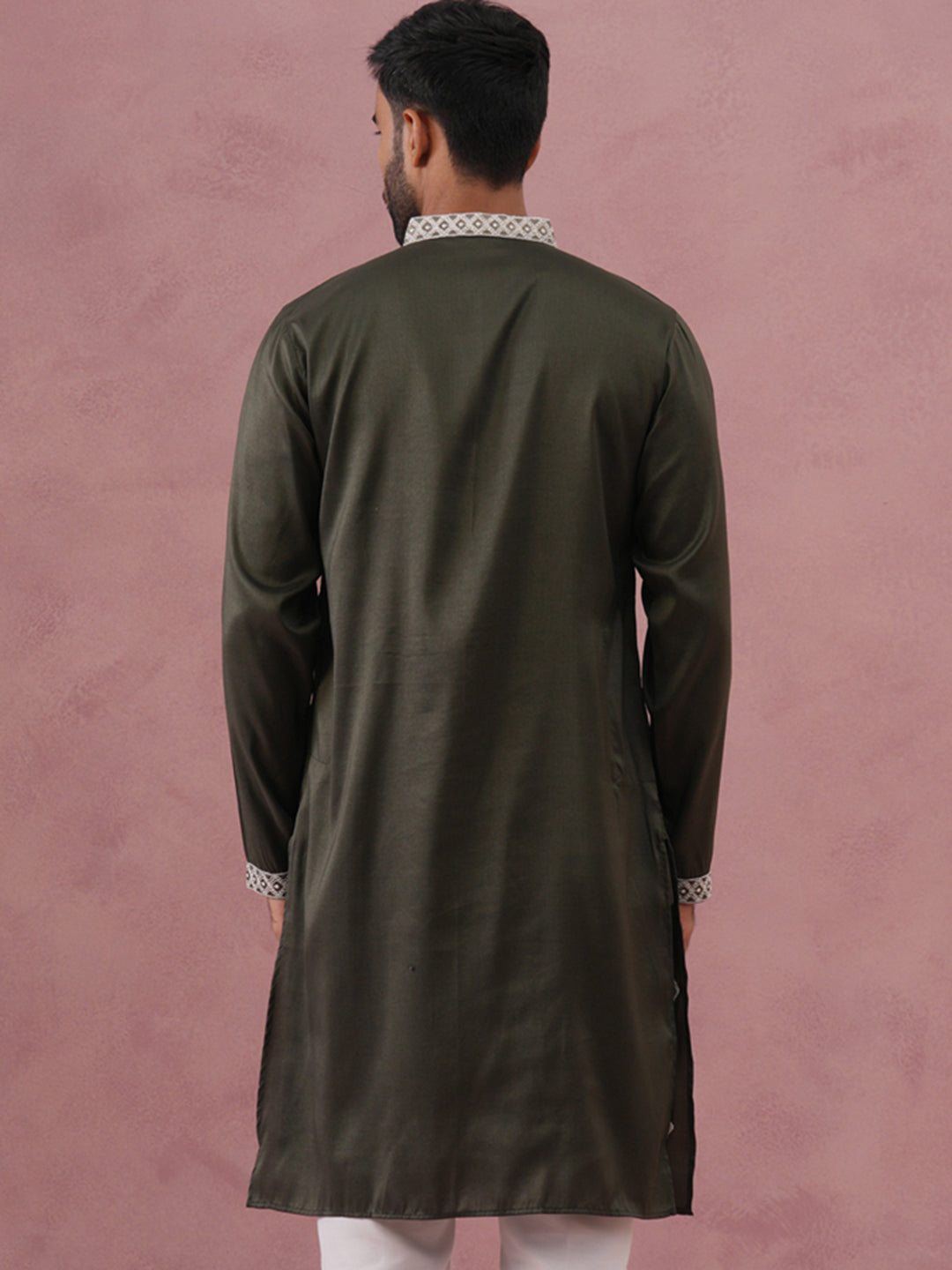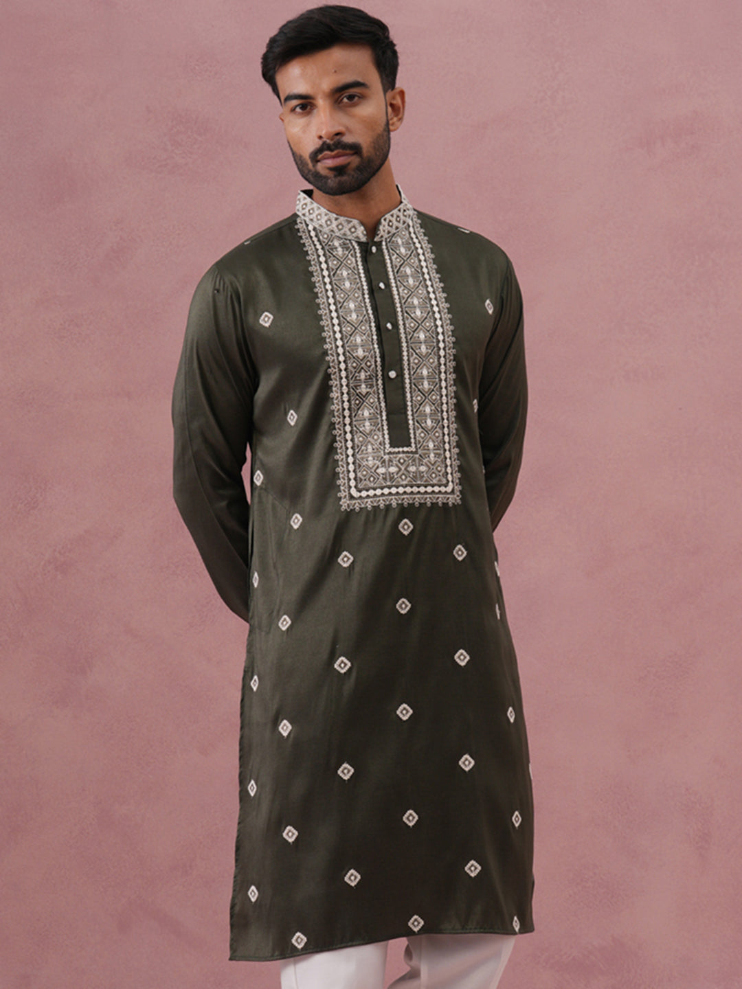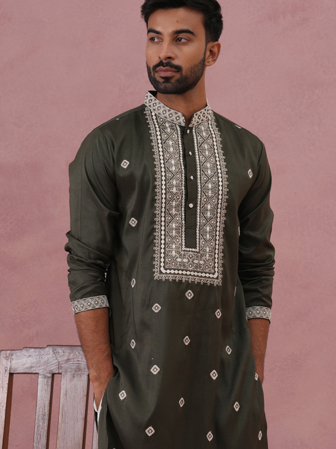 Men’s Ethnic Silk Blend Embroidered Kurta