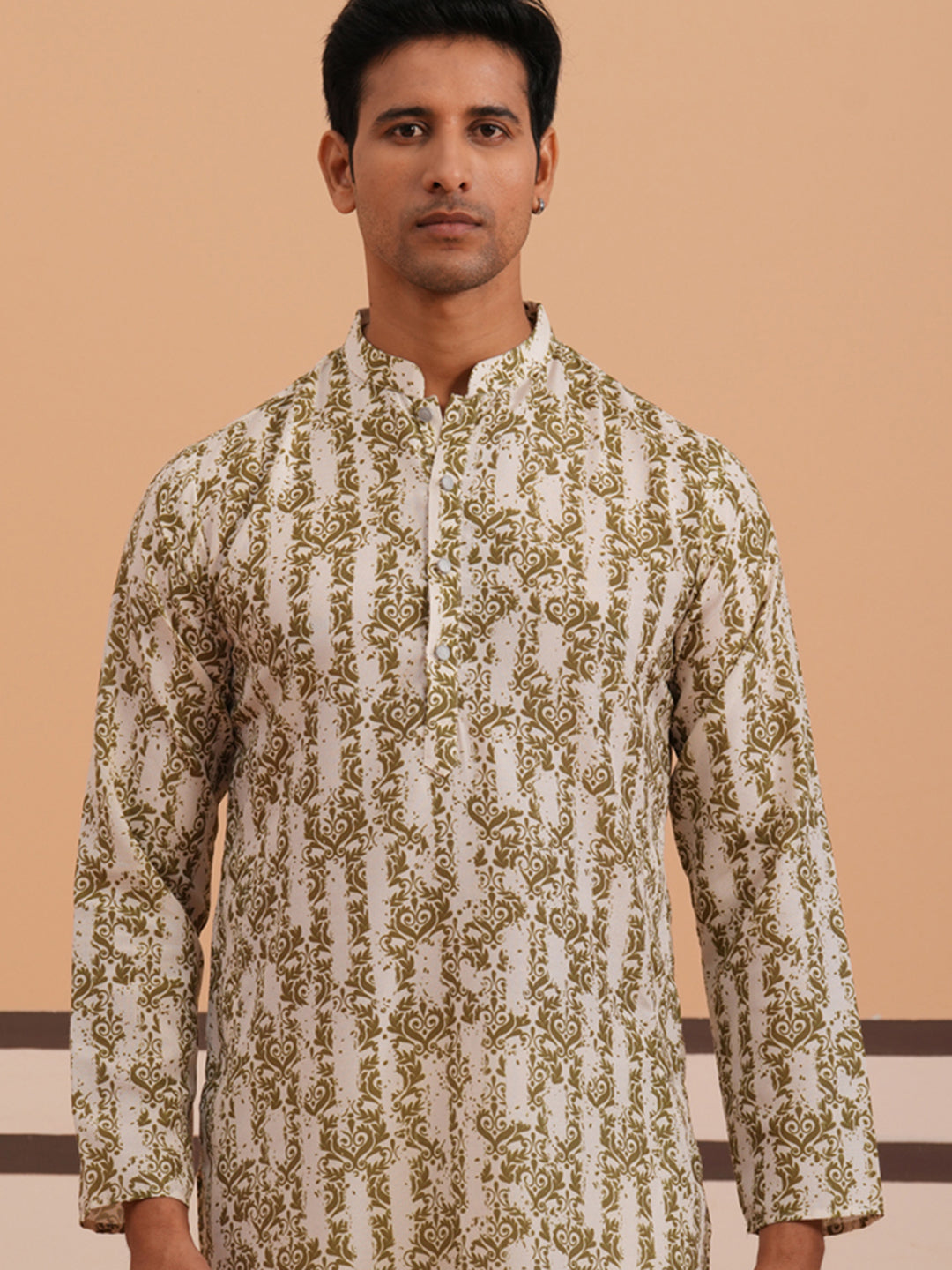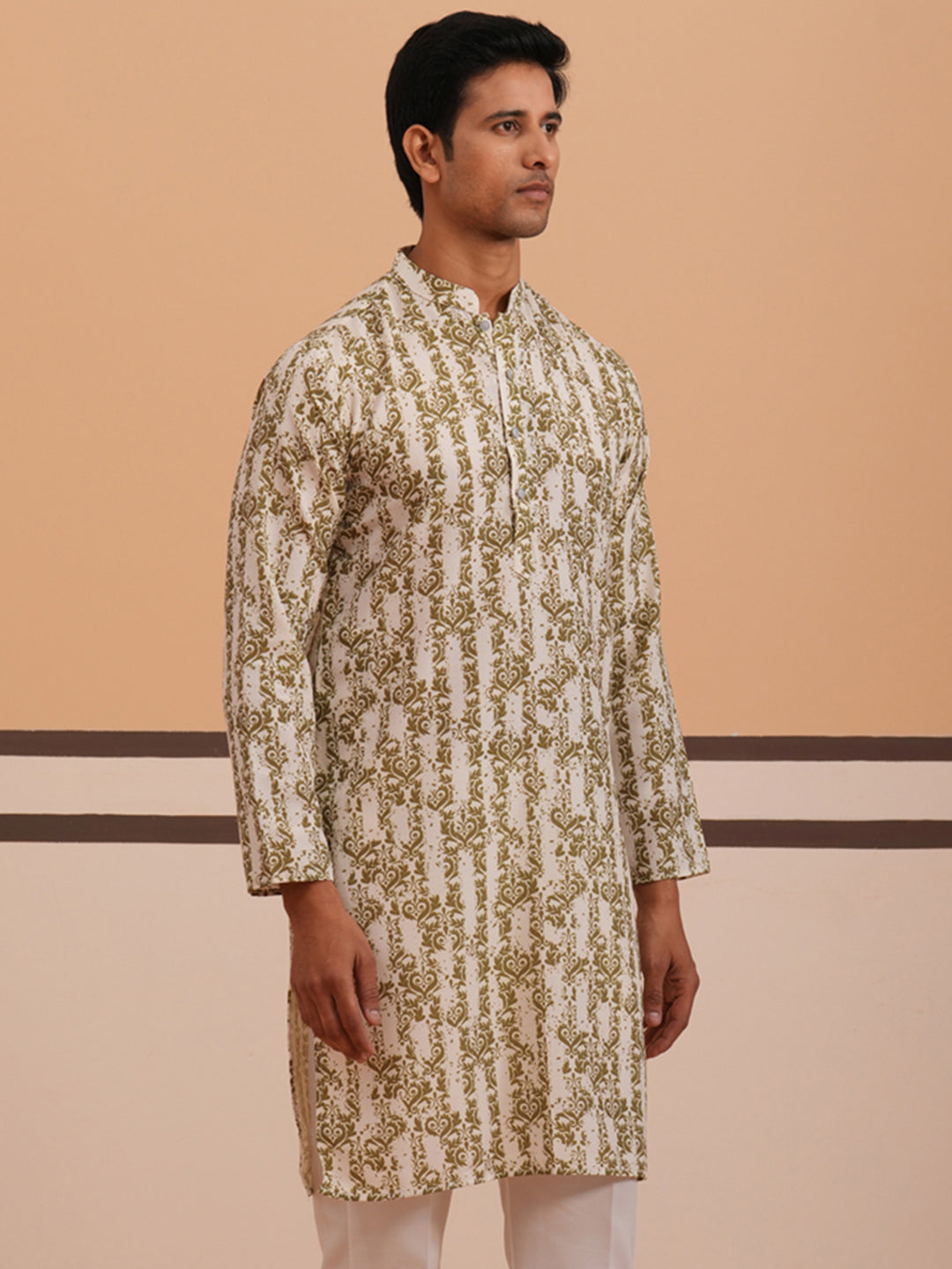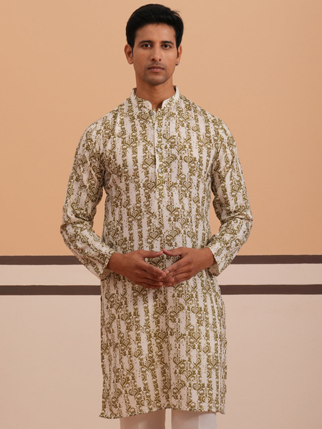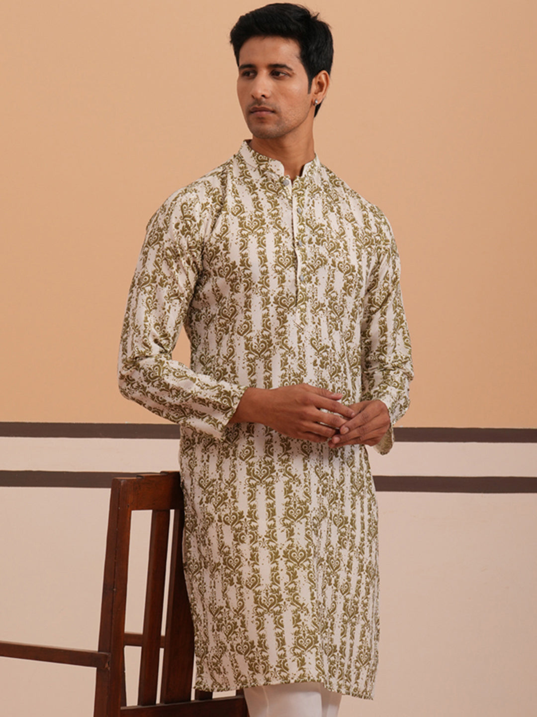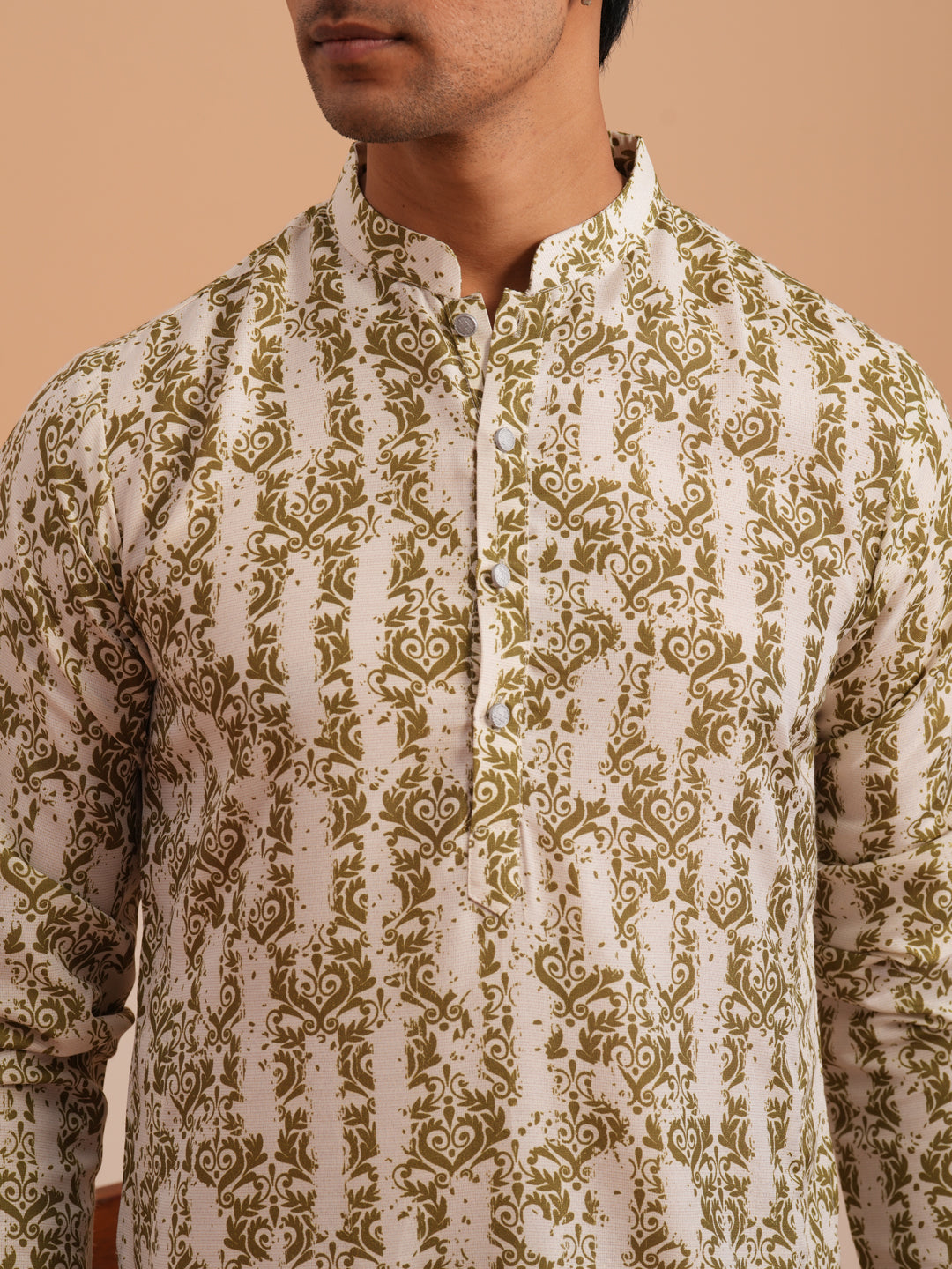Olive Ethnic Printed Kurta for Men