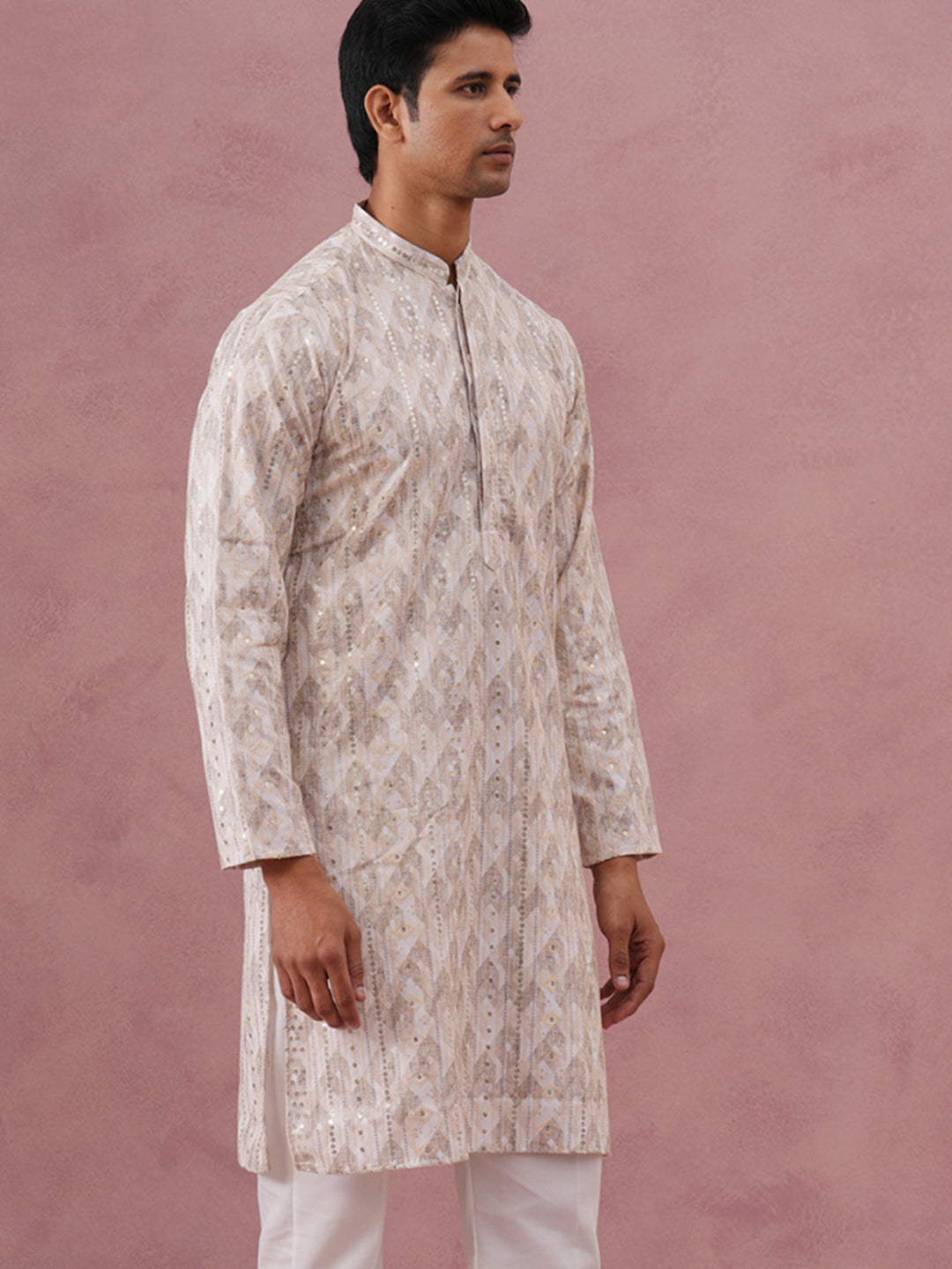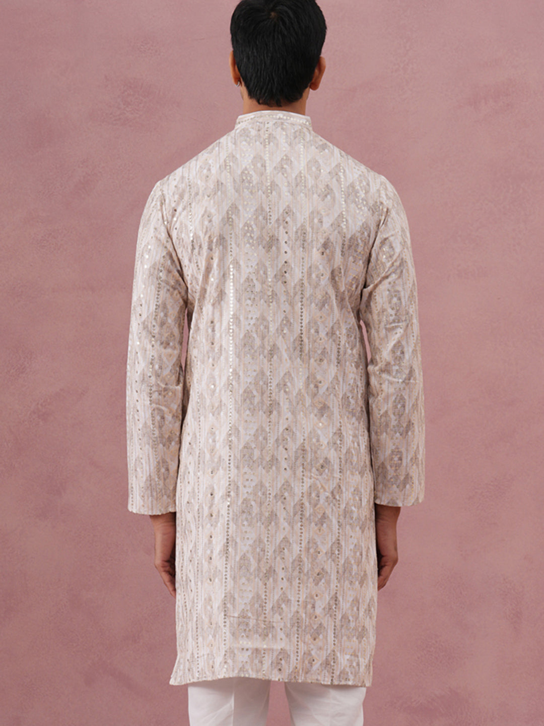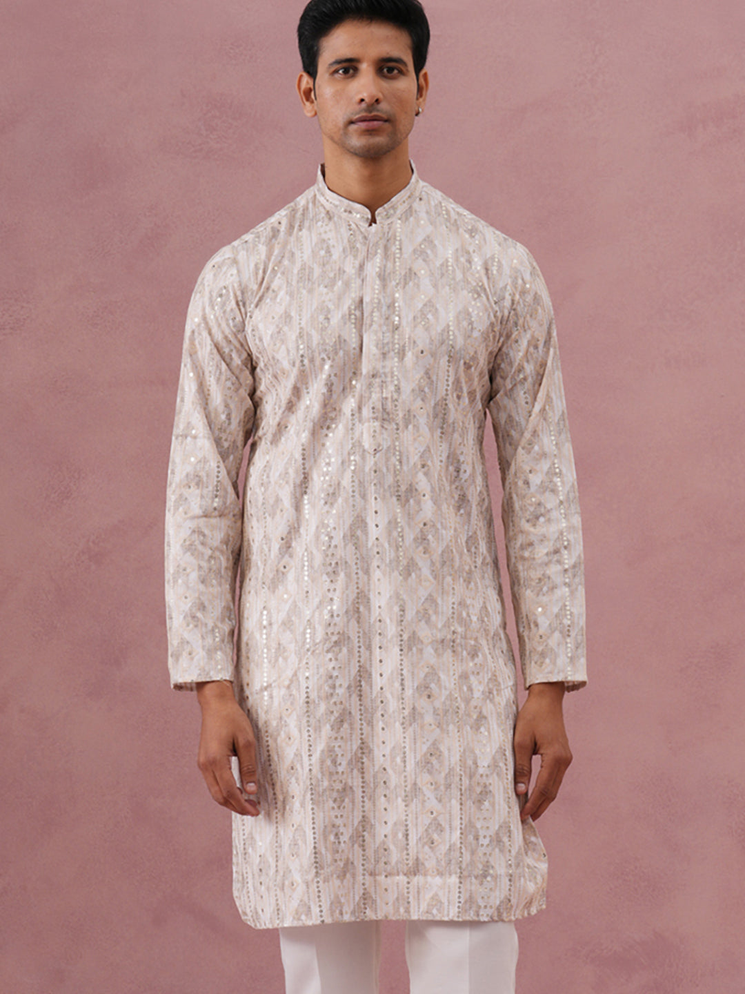 Peach Geometric Print & Sequin Kurta
