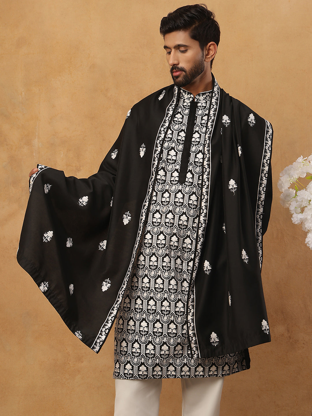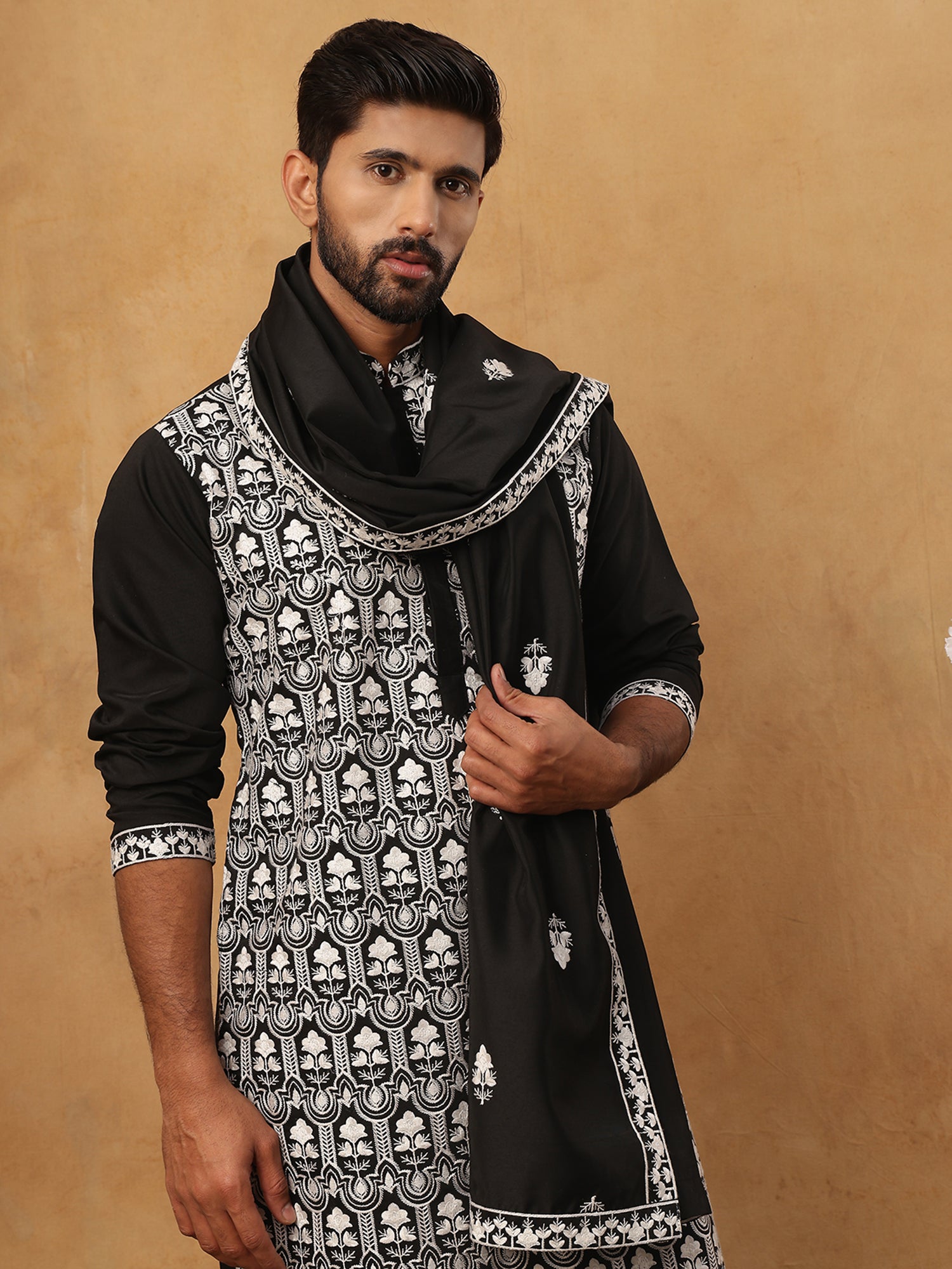Silk Blend Embroidered Kurta & Dupatta