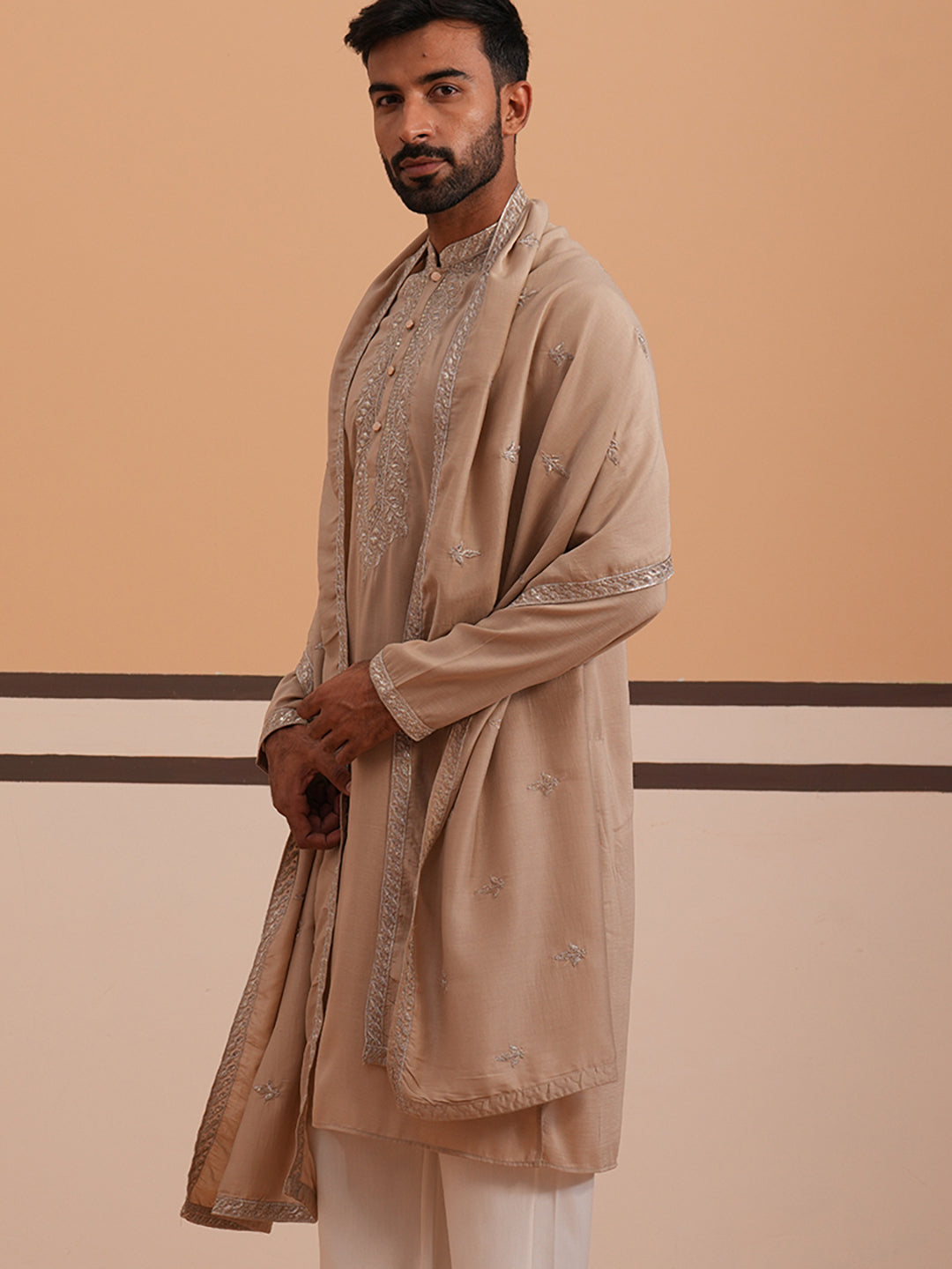Silk Blend Kurta with Matching Embroidered Dupatta