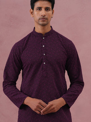 Wine Silk Blend Kurta with Black Geometric Embroidery