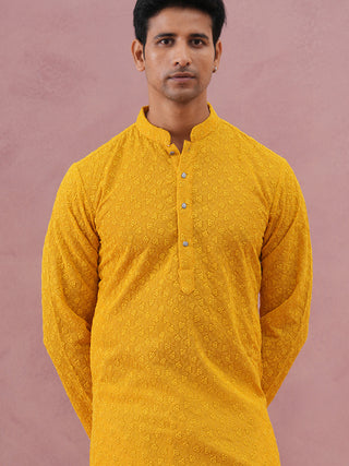 Men Golden Silk Blend Straight Kurtas