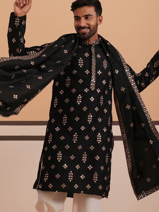 Silk Blend Embroidered & Sequinned Kurta