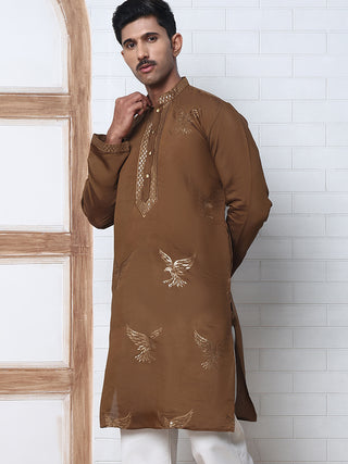 Silk Blend Kurta with Golden Eagle Embroidery
