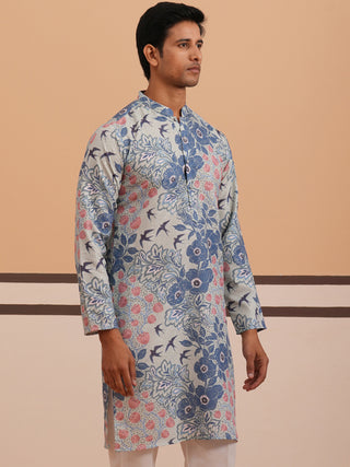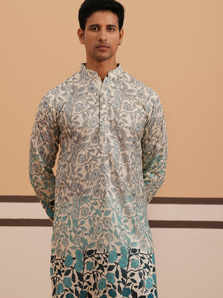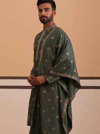 Silk Blend Kurta with Matching Embroidered Dupatta