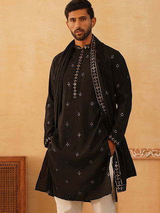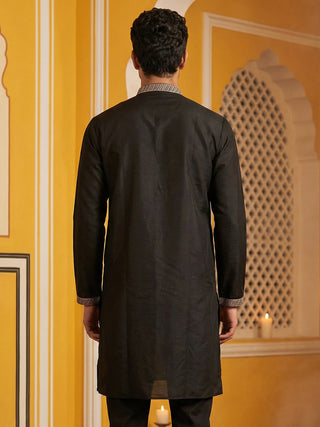 Black Silk Blend Embroidered Kurta