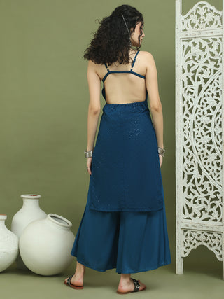 Women Turquoise Blue Embroidered Regular Sequinned Kurta with Trousers & Dupatta