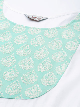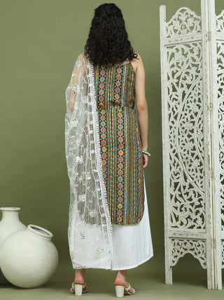 Green Woven Design Kantha Work Kurta with Palazzos & With Dupatta