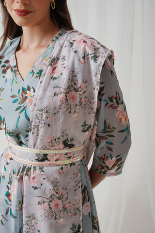 Green Floral Printed Sequinned Kurta with Trousers & Dupatta & Belt