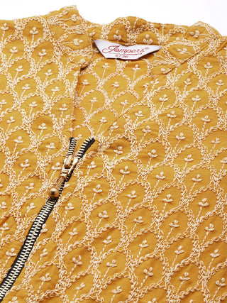 Women Yoke Design Jacquard Kurta with Palazzos & Dupatta