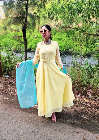 Sequin Work Belt, Flaired Kurta with trousers and dupatta