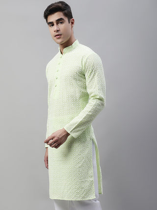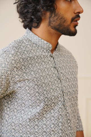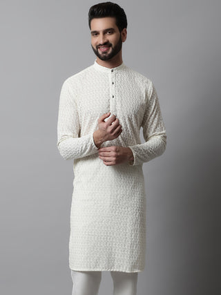 Men's Navy Blue Chikankari Embroidered and Sequence Kurtas