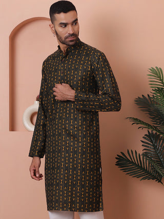 Men Black Solid Straight Short Kurta