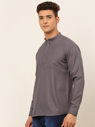 Men's Light Grey Solid Short Kurtas