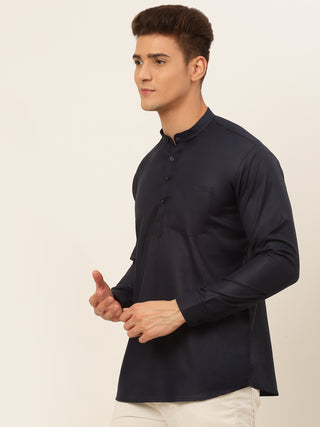 Jompers Men's Navy-Blue Solid Cotton Short Kurta