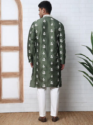 Men’s Ethnic Silk Blend Embroidered Kurta Set