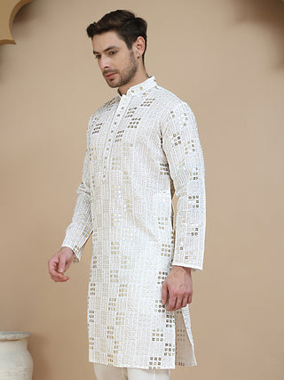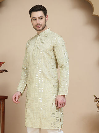Men's Sky Blue Chikankari Embroidered and Sequence Kurta with Pyjama