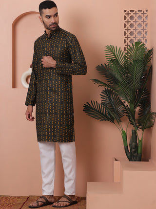 Men Brown Woven Design Cotton Kurtas