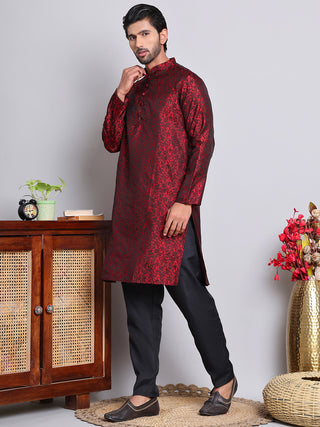 Men's Coral Red & White Embroidered Straight Kurta Pyjama Set