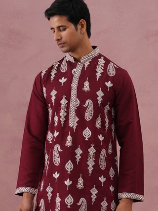 Men’s Ethnic Silk Blend Embroidered Kurta