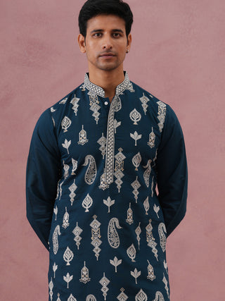 Silk Blend Ethnic Embroidered Kurta for Men