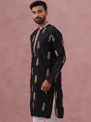 Botanical Embroidered Cotton Blend Kurta for Men