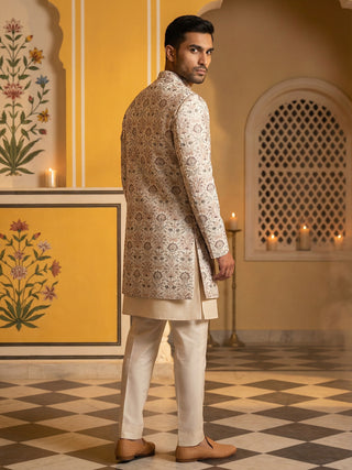 Men’s Peacock Blue Heavily Embroidered Indo-Western Set
