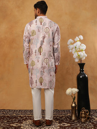 Printed Cotton Blend Kurta Pyjama with Thread Work