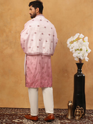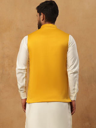 Embroidered Nehru Jacket Set with Solid Kurta Pyjama