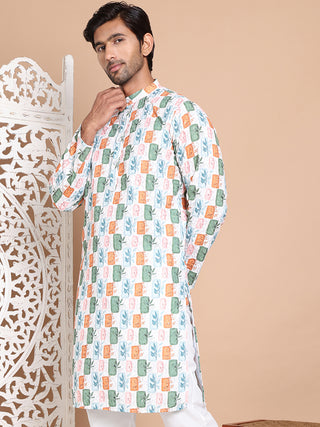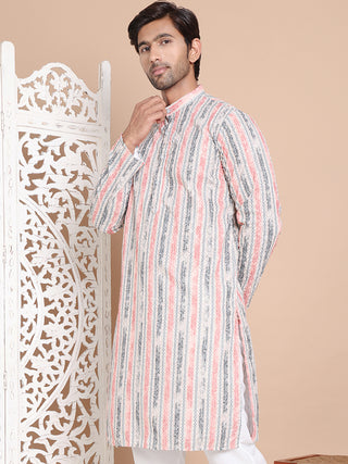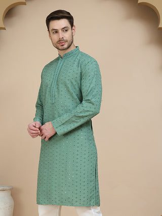 Men's Navy Blue Chikankari Embroidered and Sequence Kurta with Pyjama.