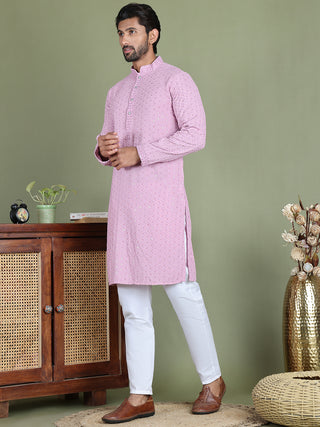 Men's Magenta Embroidered and Sequence Kurta with Pyjama