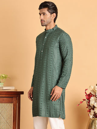 Men's Black Chikankari Embroidered and Sequence Kurtas