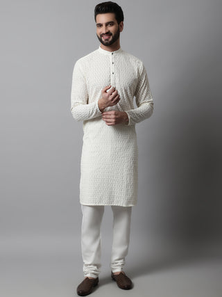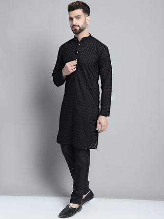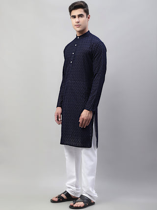 Jompers Men Navy Blue Chikan Kurta with Churidar