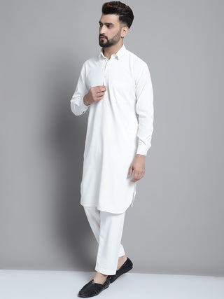 Men's White Cotton Solid Pathani Kurta with Salwar