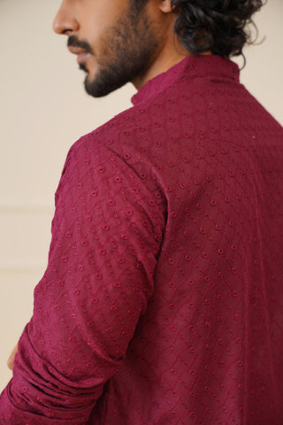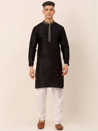 Men's Silk Blend Collar Embroidered Kurta Pyjama Set