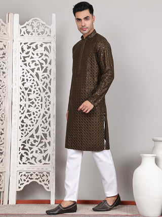 Men's Black Sequins and Embroidred Nehru Jacket With Solid Kurta Pyjama.