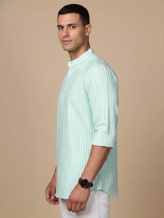 Cotton Blend Grey Striped Short Kurta