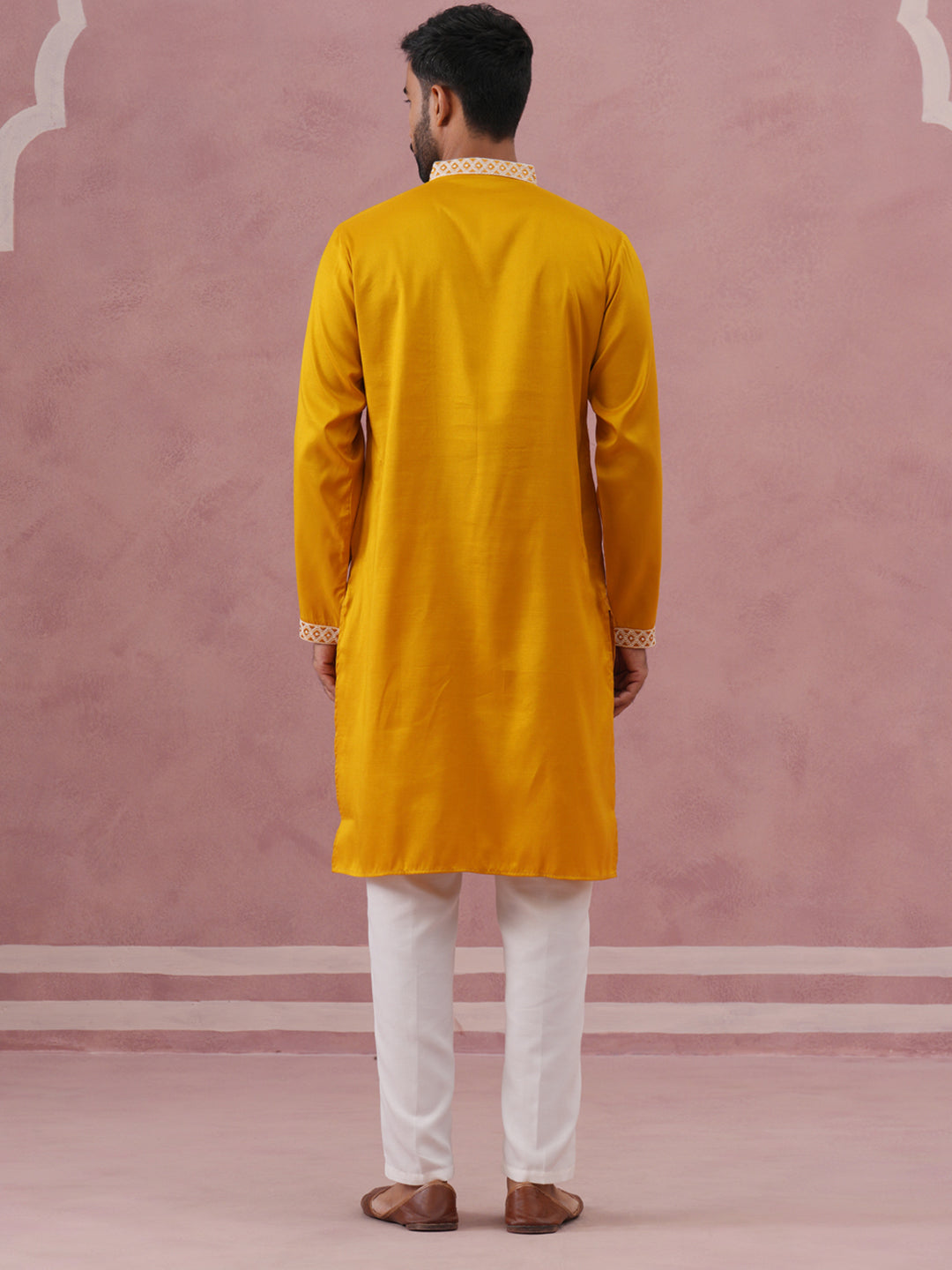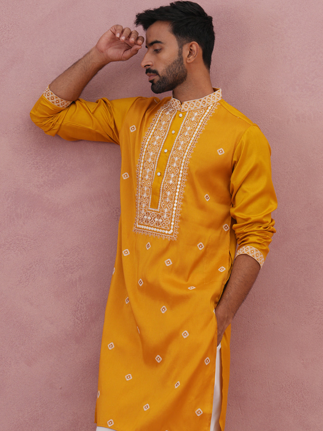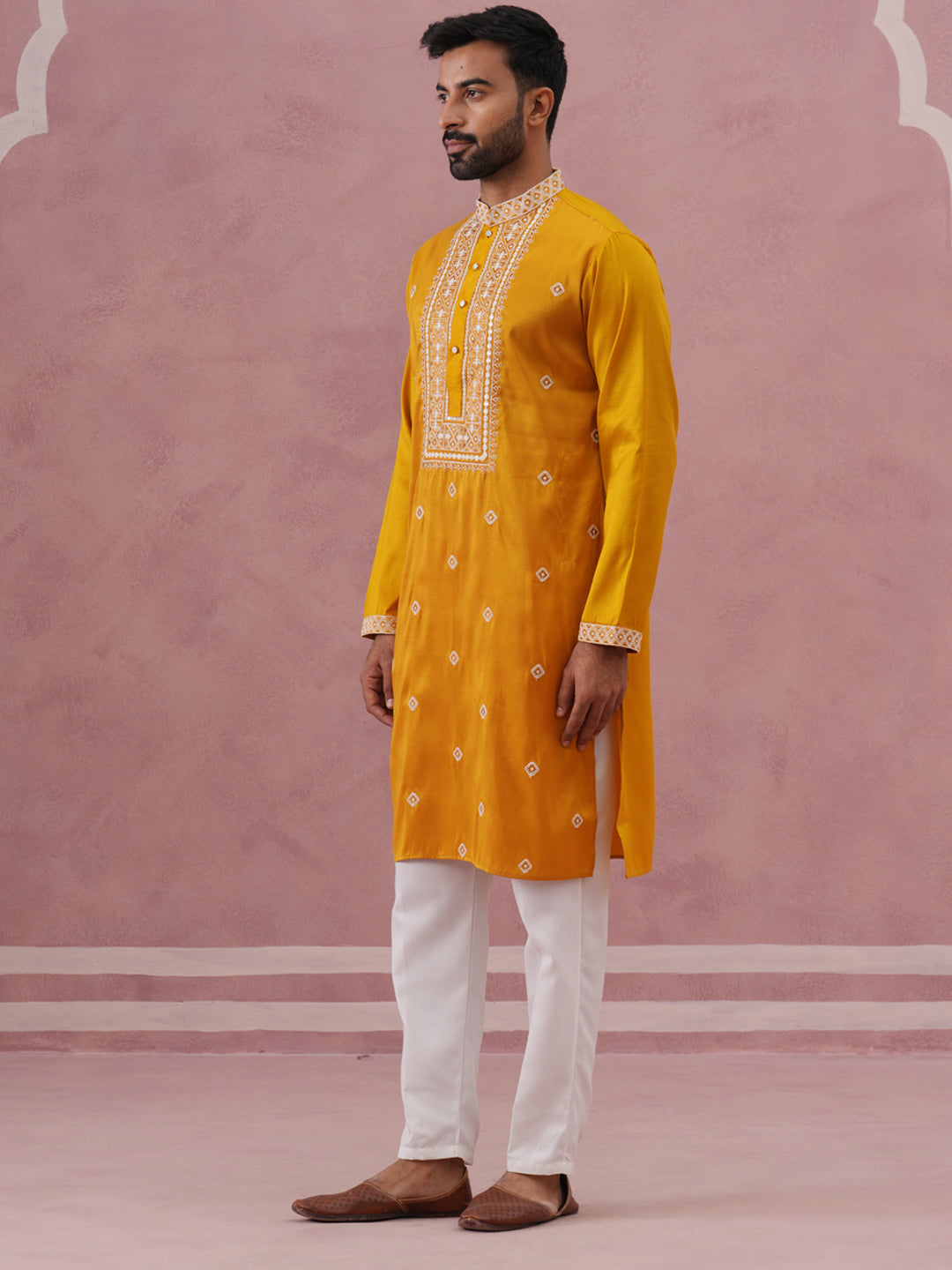 Men’s Ethnic Silk Blend Embroidered Kurta Set