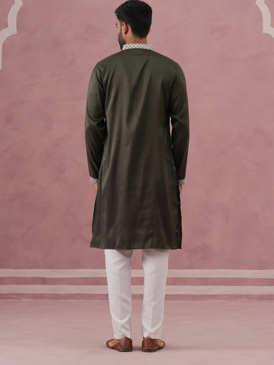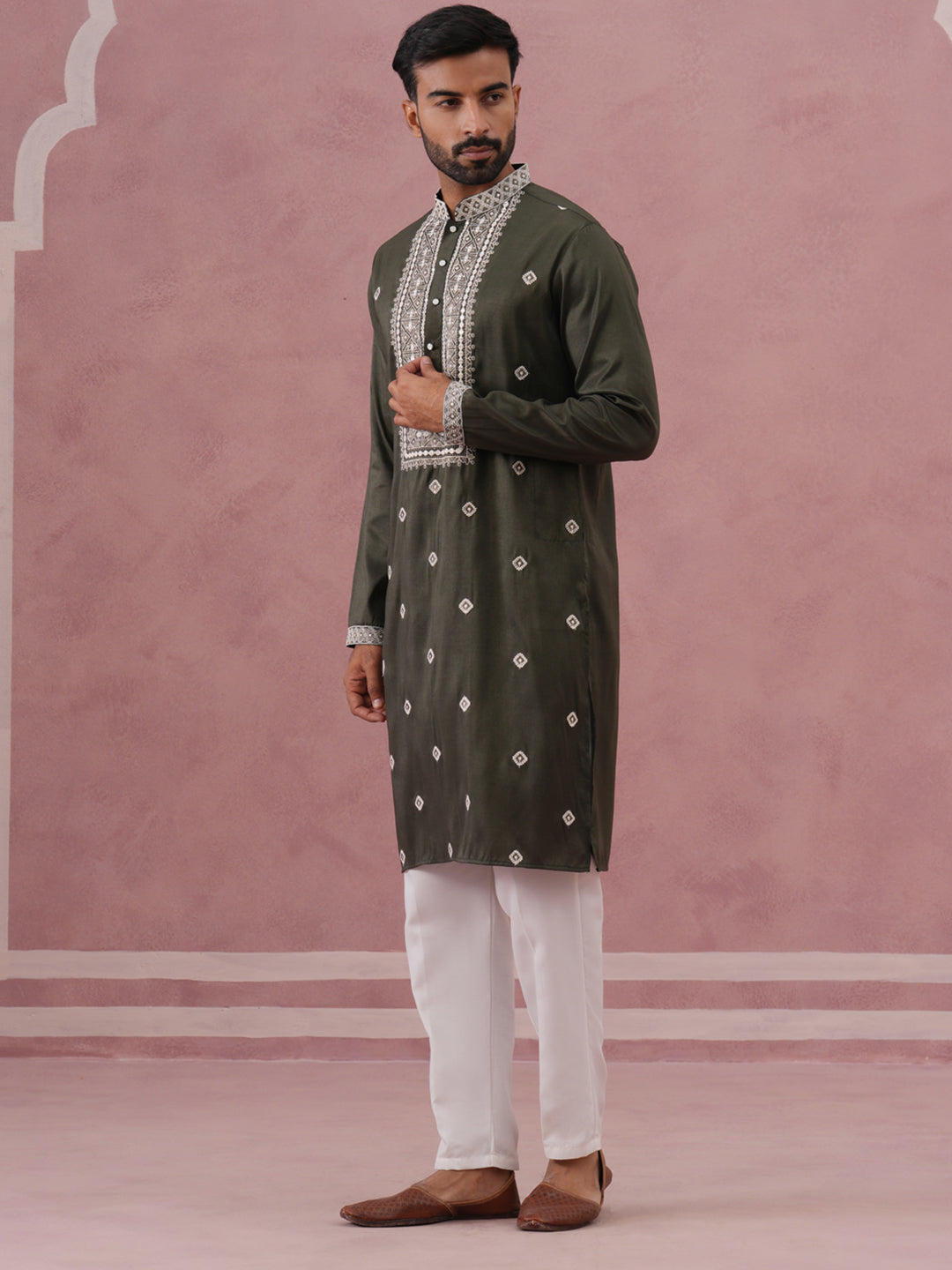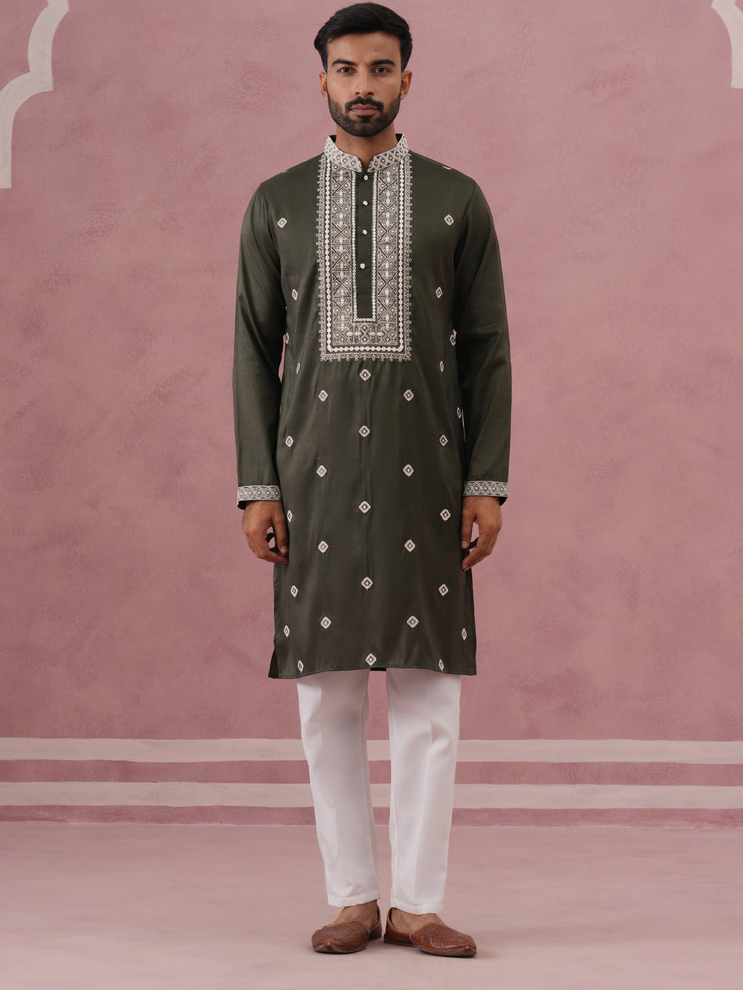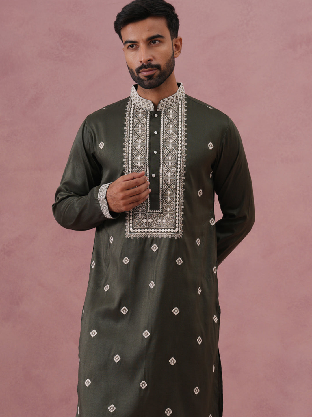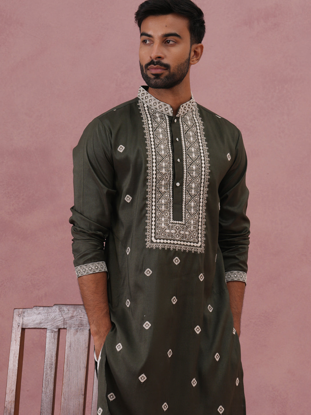 Men’s Ethnic Silk Blend Embroidered Kurta Set
