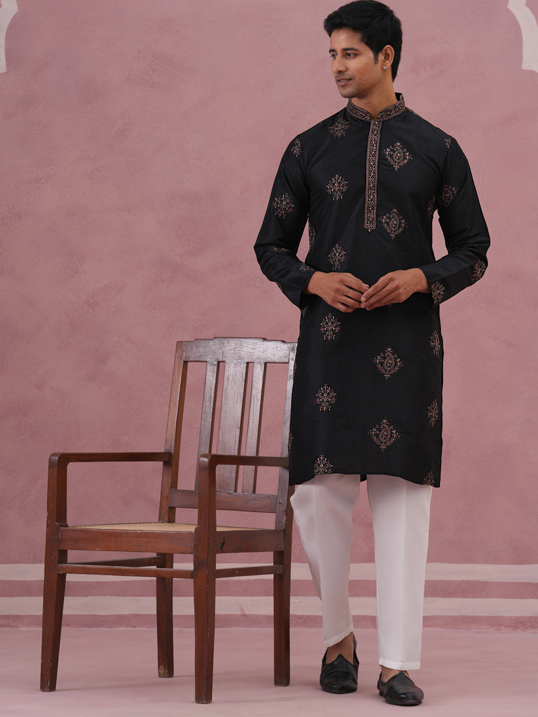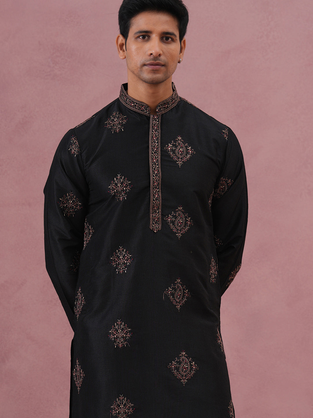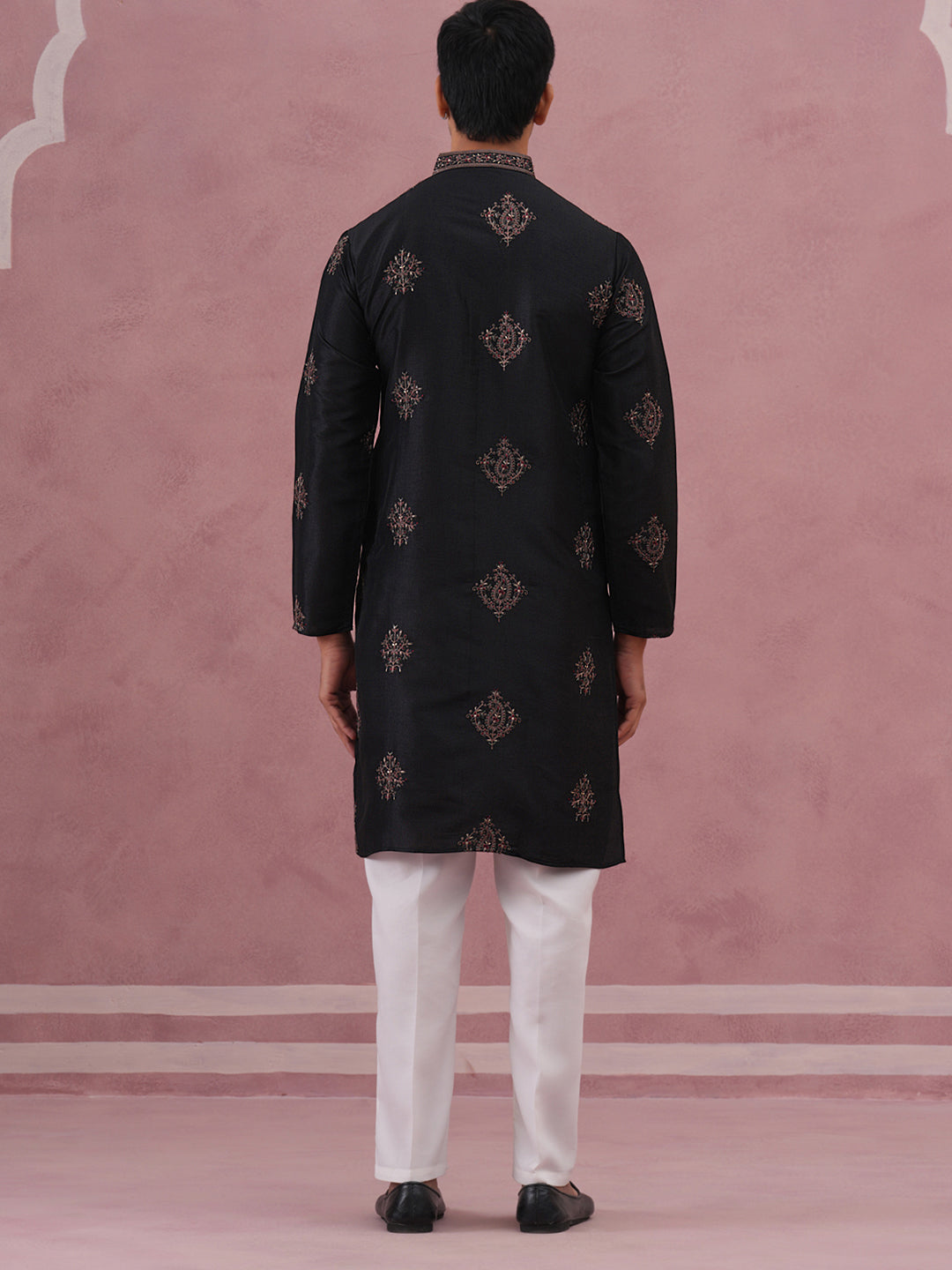 Silk Blend Black Kurta Pyjama Set for Men