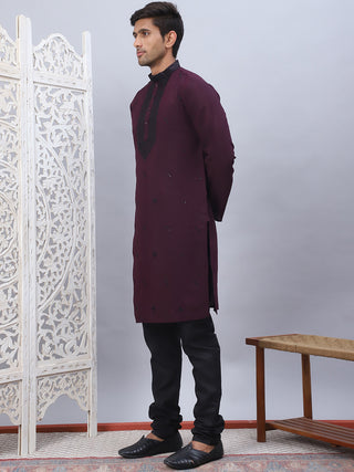 Men's Maroon Chikankari Embroidered and Sequence Kurta with Pyjama.