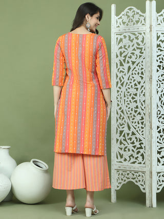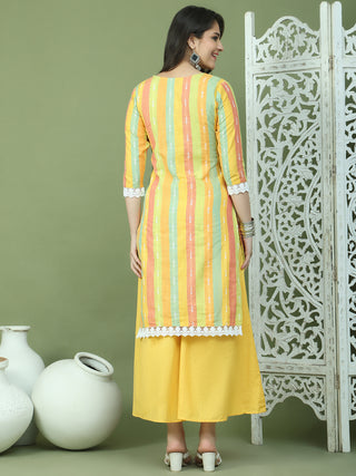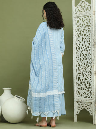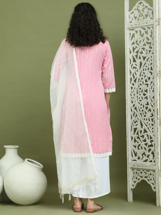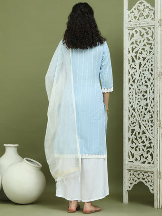 Lace Work, Woven Design straight Kurta Palazzo Dupatta Set