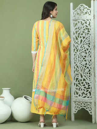 Lace Work, Woven Design straight Kurta Palazzo With Dupatta