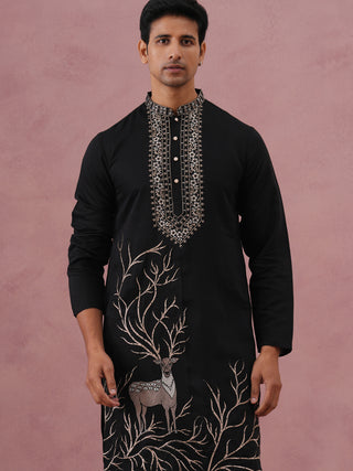 Men Ethnic Navy Blue Woven Design Kurta with Pyjamas