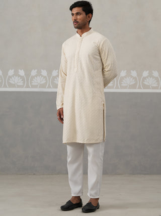 Men Ethnic Beige Woven Design Kurta with Pyjamas