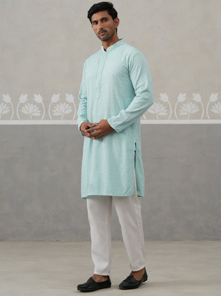 Men Ethnic Sky Blue Woven Design Kurta with Pyjamas