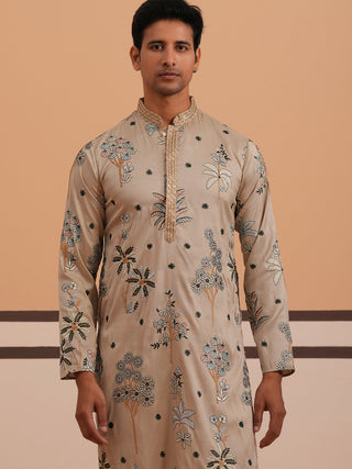 Botanical Embroidered Cotton Blend Kurta for Men