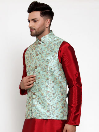 Jompers Men's Blue Digital Printed Blue Waistcoat
