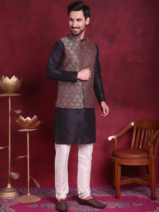 Woven Design Nehru Jacket With Kurta Pyjama Set